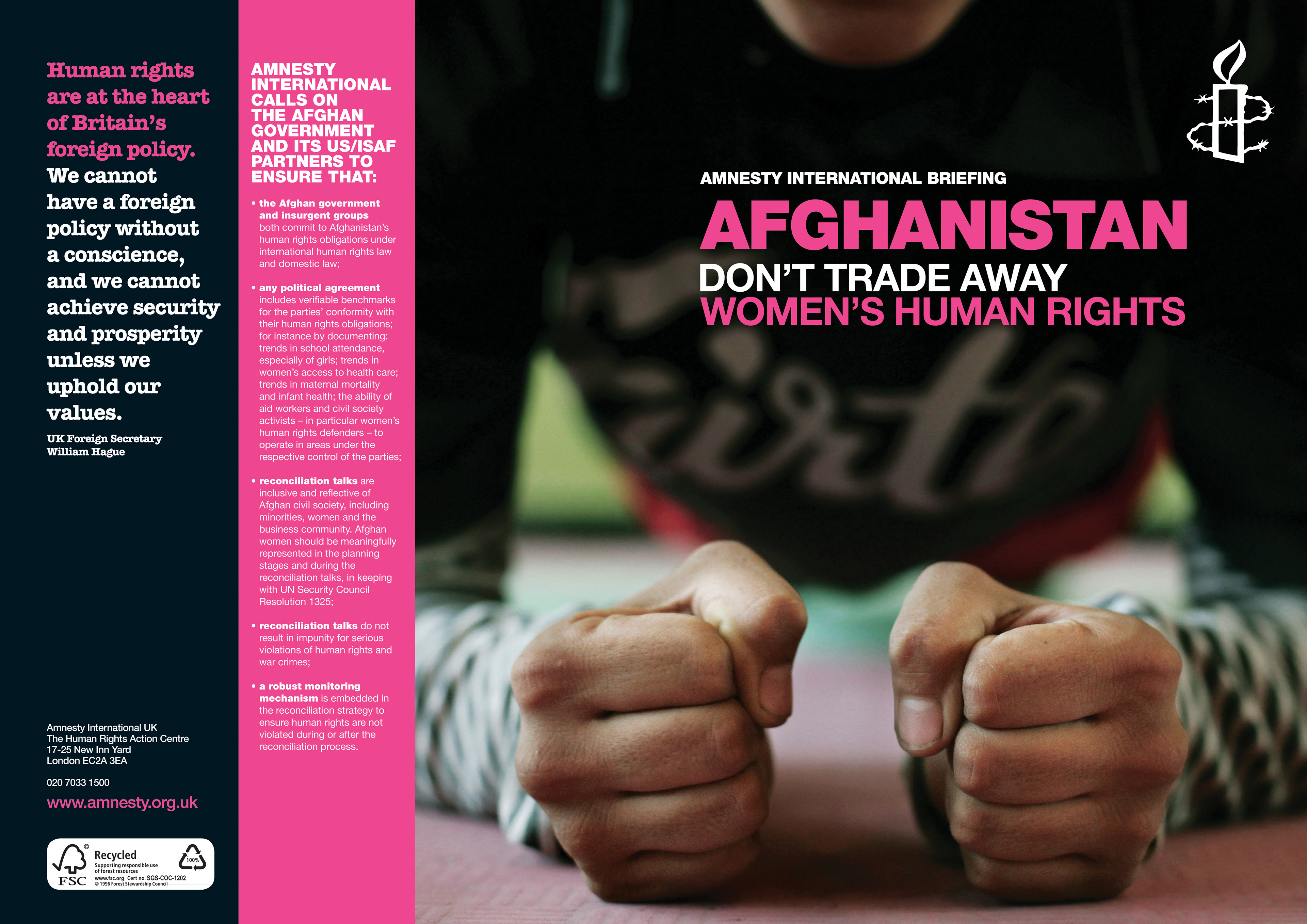 A briefing paper from Amnesty International UK examining the state of women’s human rights in Afghanistan.