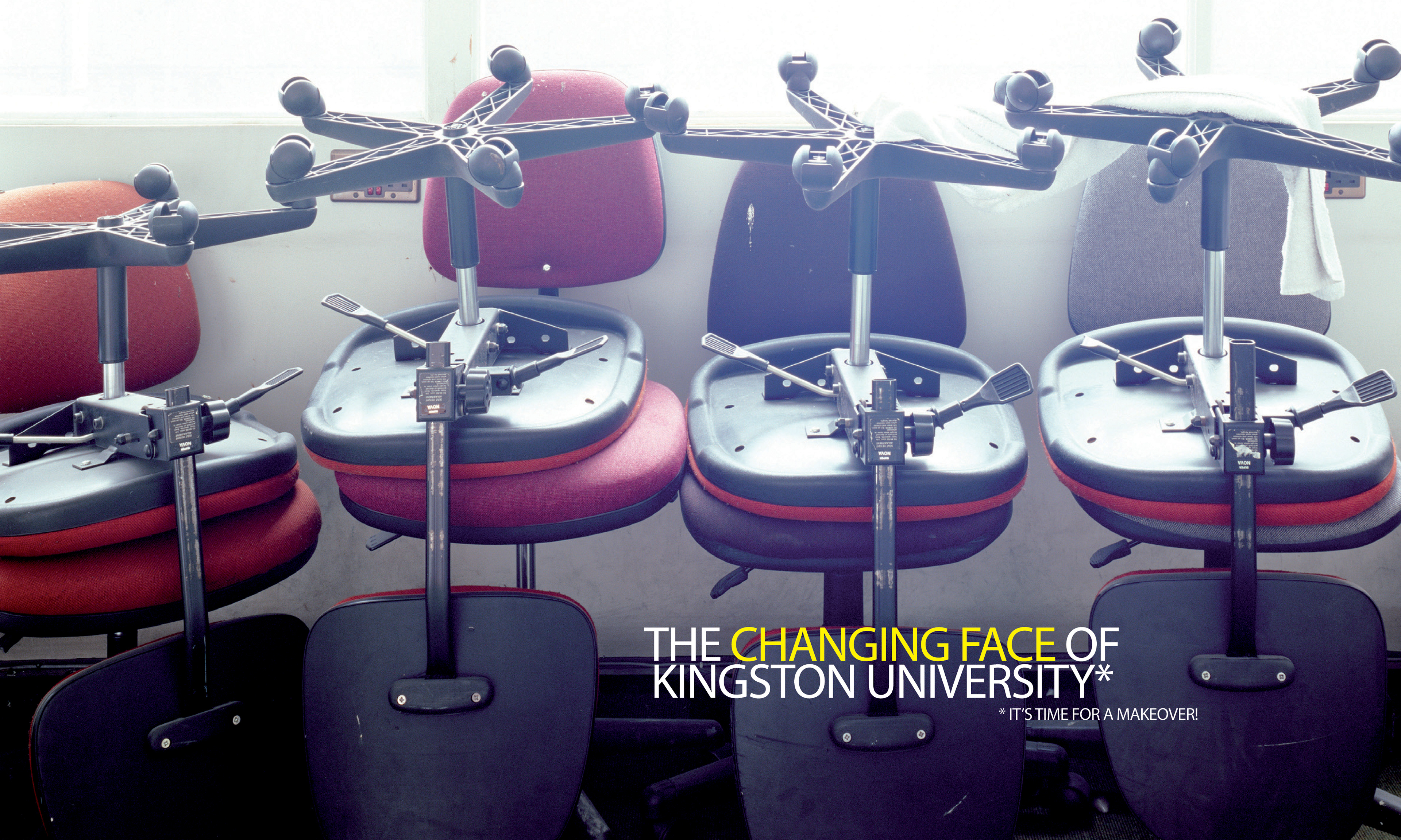 Large scale hoardings to cover up building work and redevelopment around the Kingston University campus.