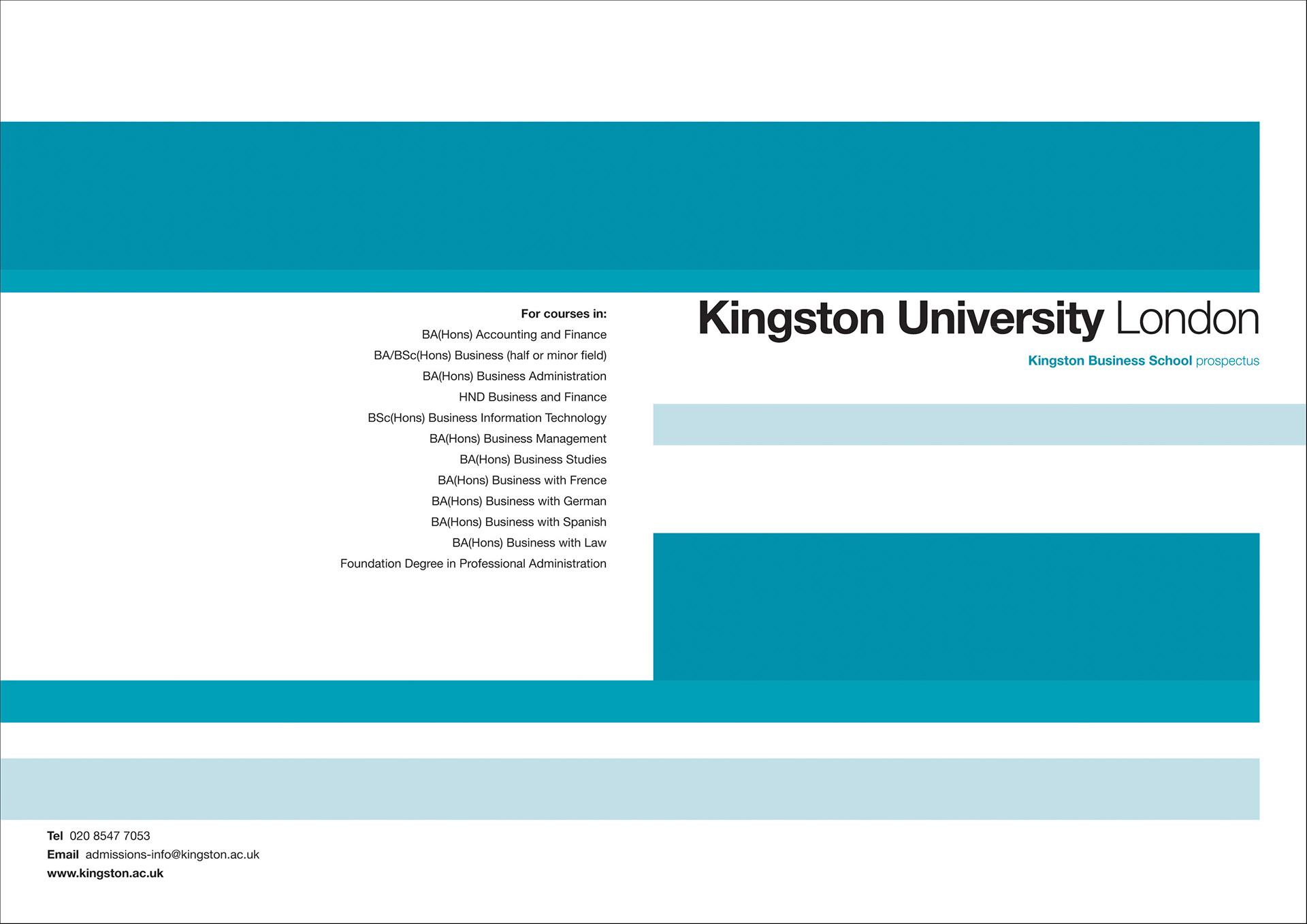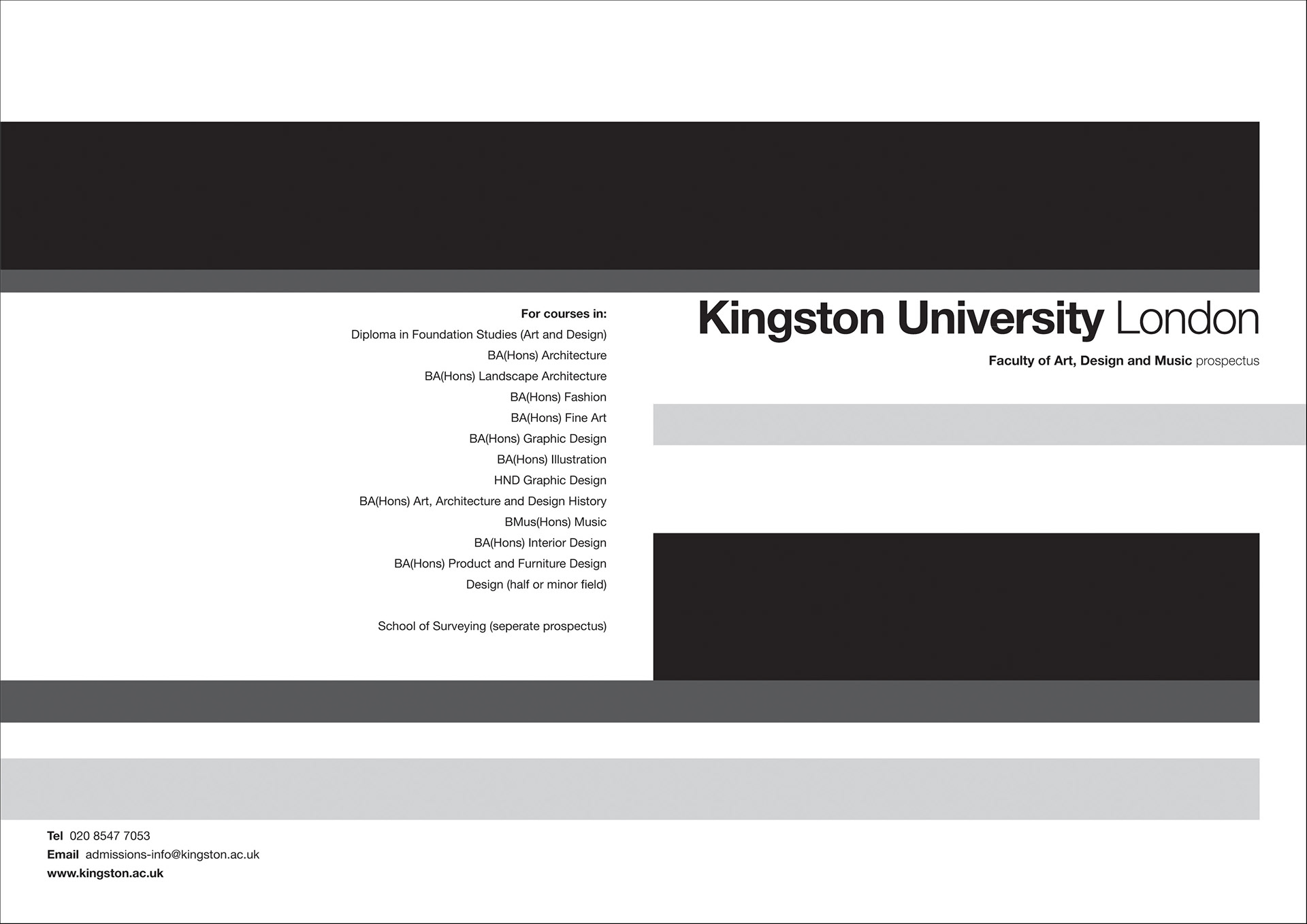Kingston University school and faculty prospectuses.