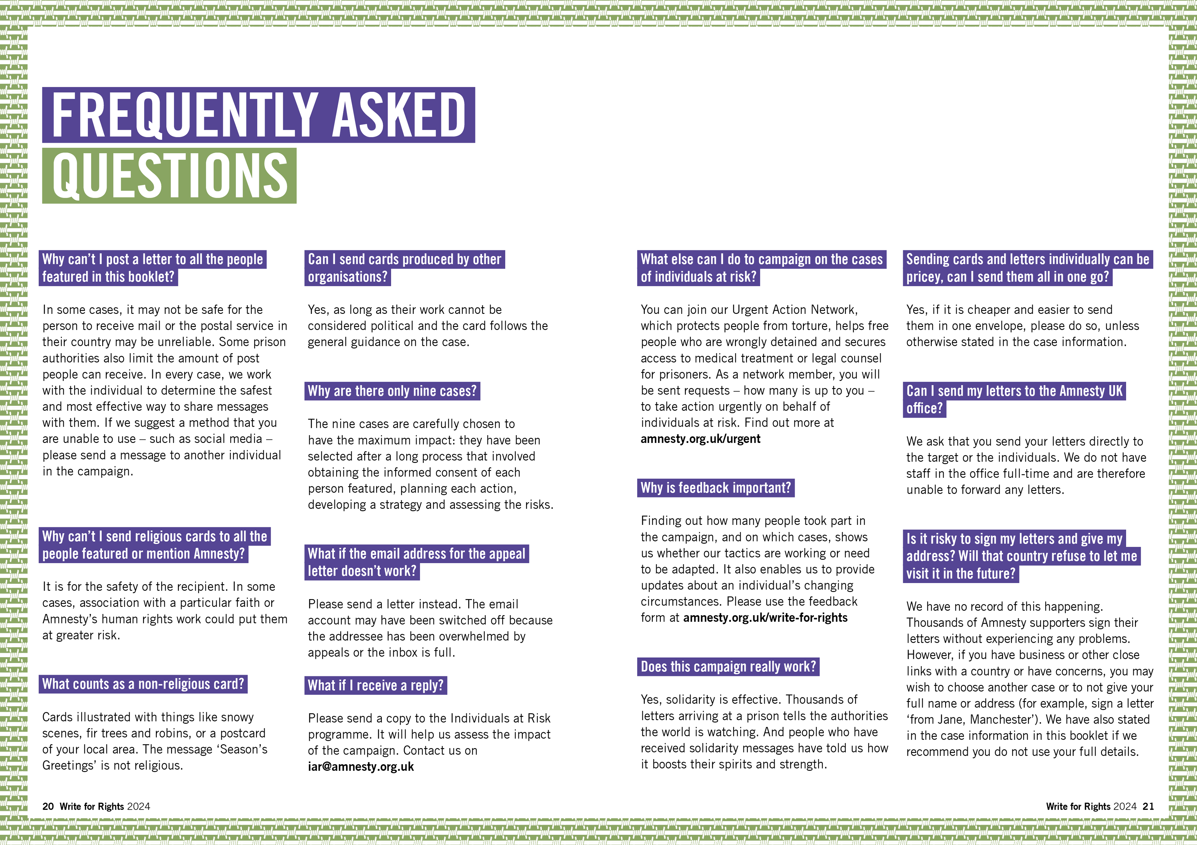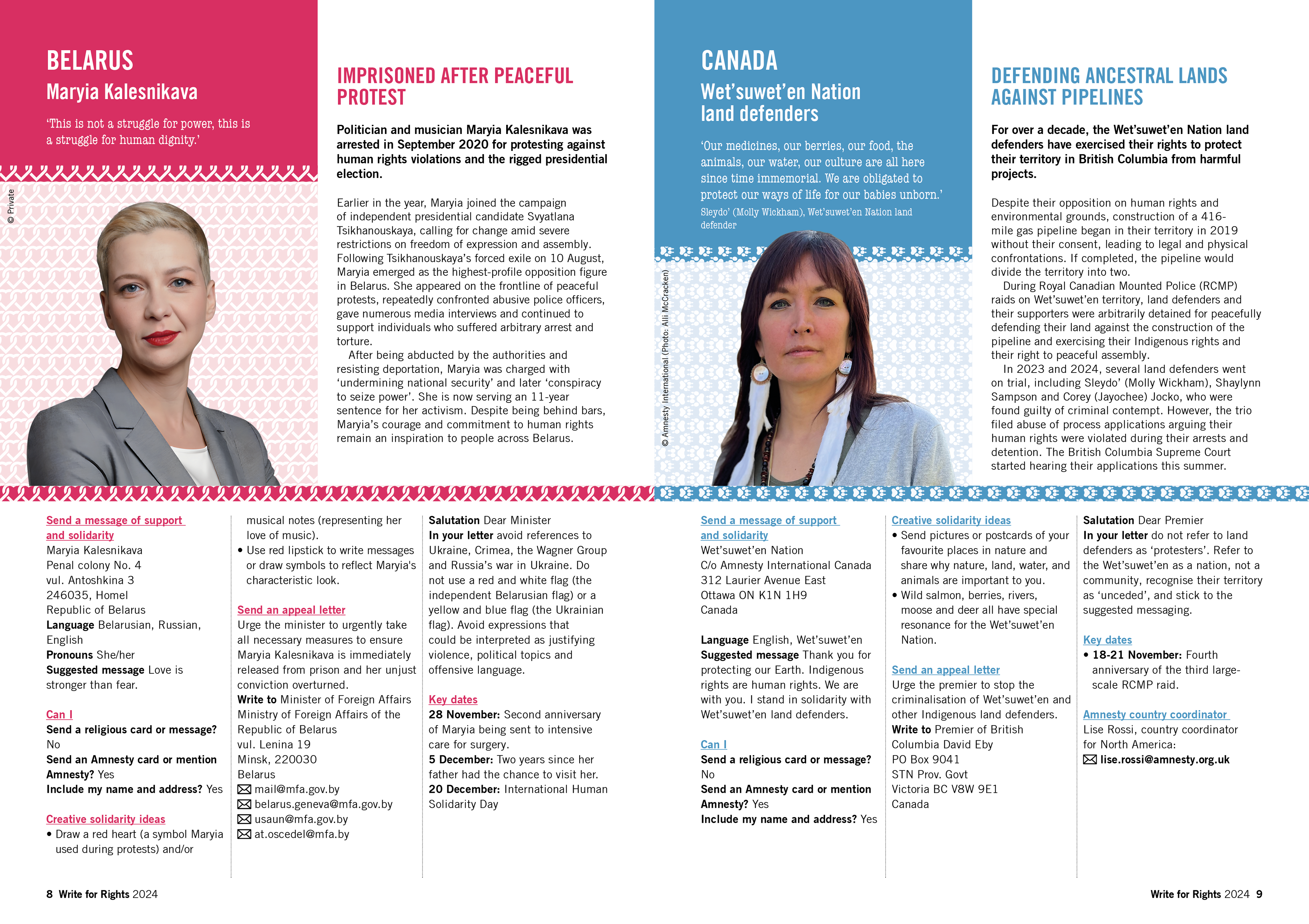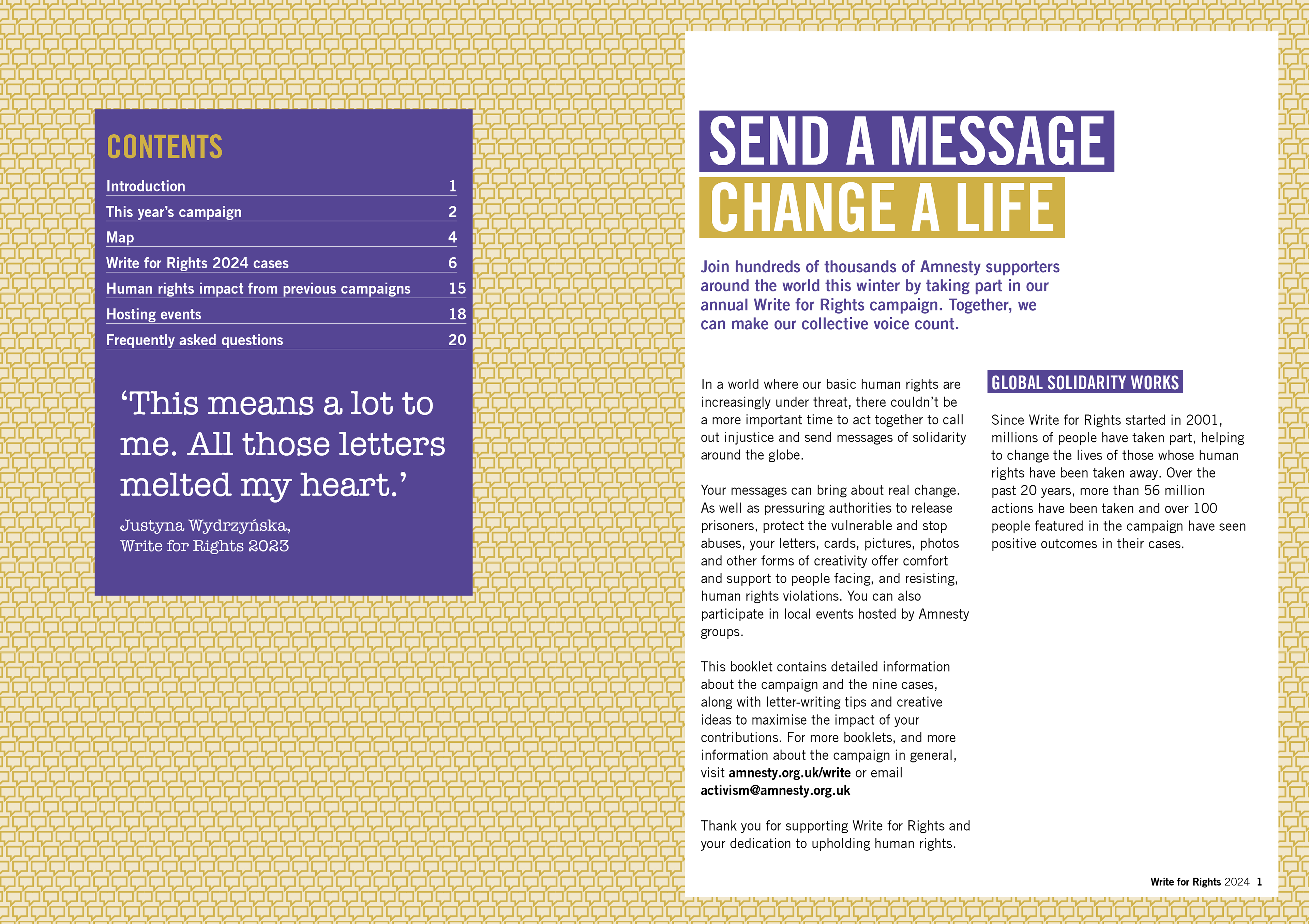 Amnesty International's yearly campaign to encourage writing messages of support to people around the world who have suffered injustice.
