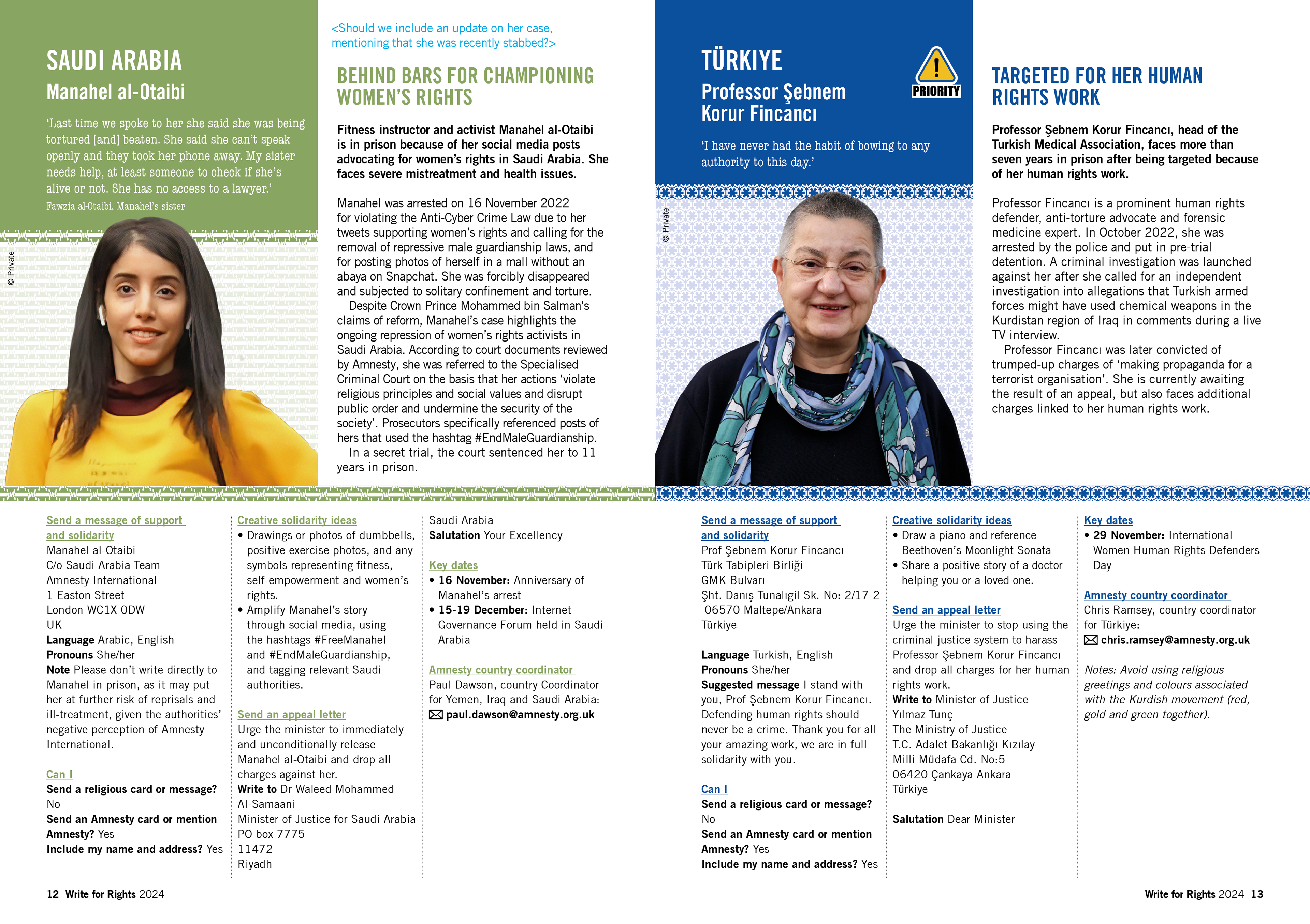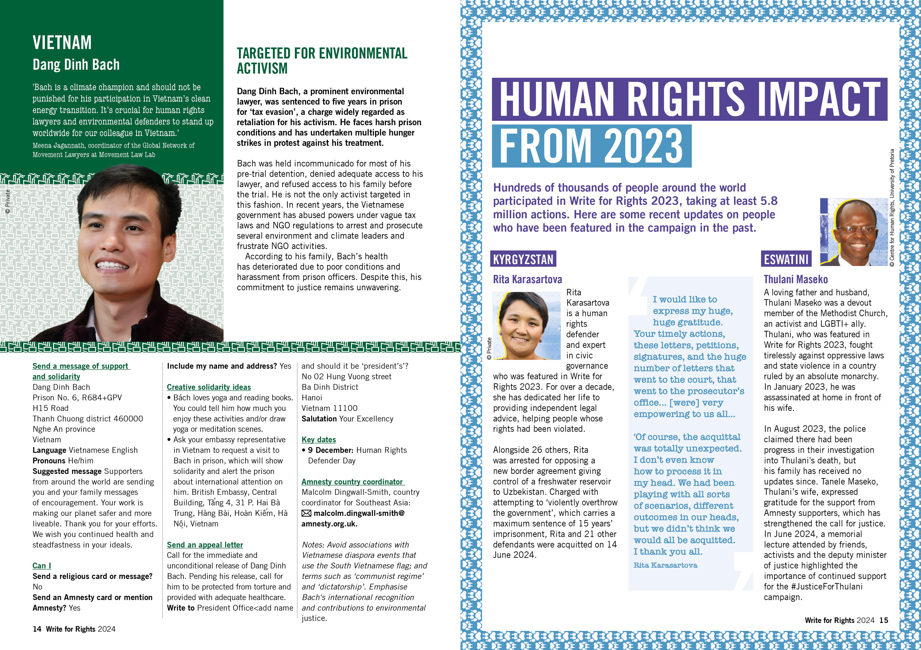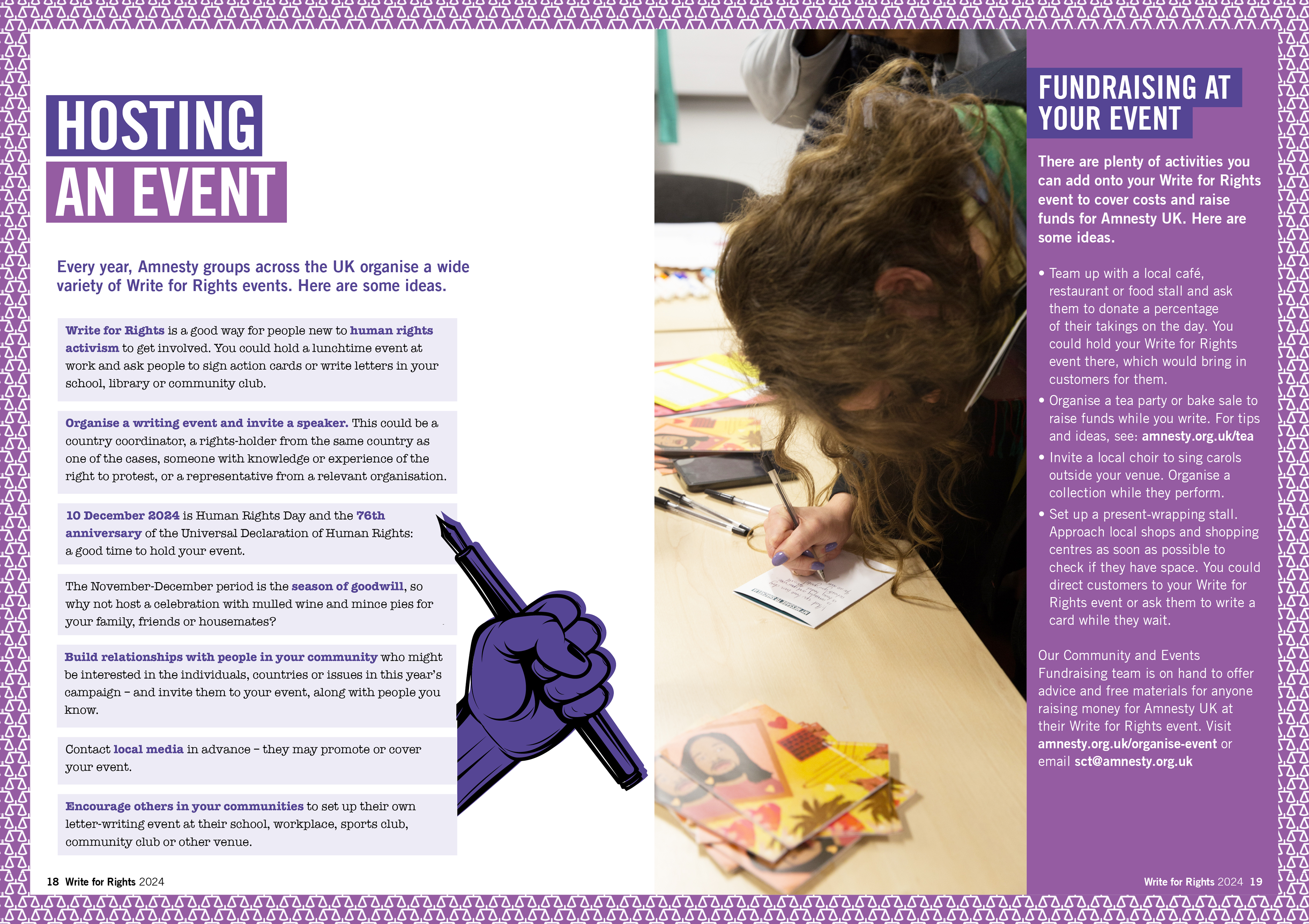 Amnesty International's yearly campaign to encourage writing messages of support to people around the world who have suffered injustice.